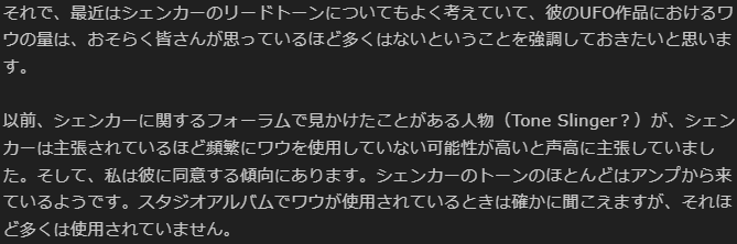 というわけで、真偽のほどは分かりませんが、マイケルシェンカーの半ワウサウンドは、ワウを使わずに出している可能性がある、という興味深い議論についてのご紹介でした。