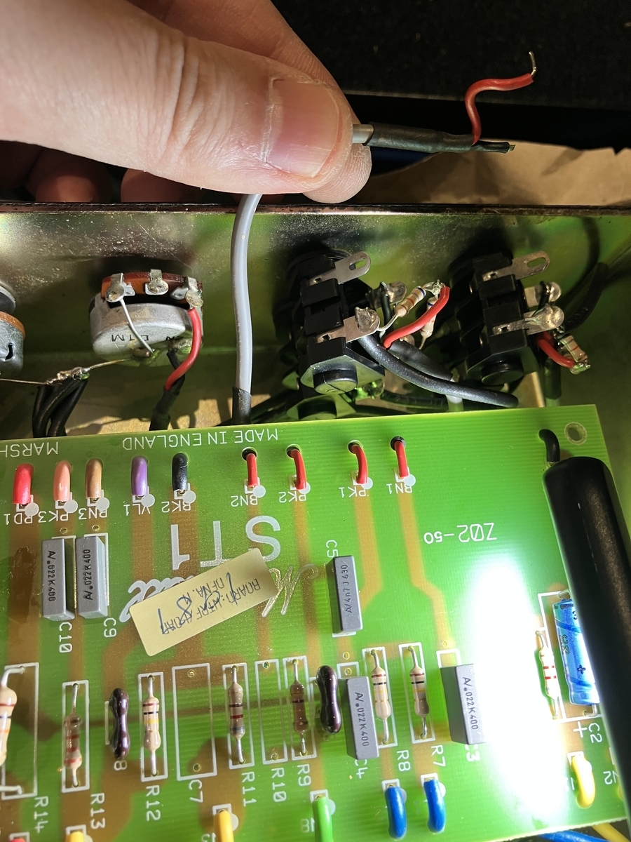 1959/1987の後年に発売されたJCM800ではV1aとV1bをカスケード接続(直列接続)することでゲインUpしていますが、これと同じ仕様にすることでハイゲイン化Modすることができます。Part1で動画公開した1987XにもこのModを適用してあります。